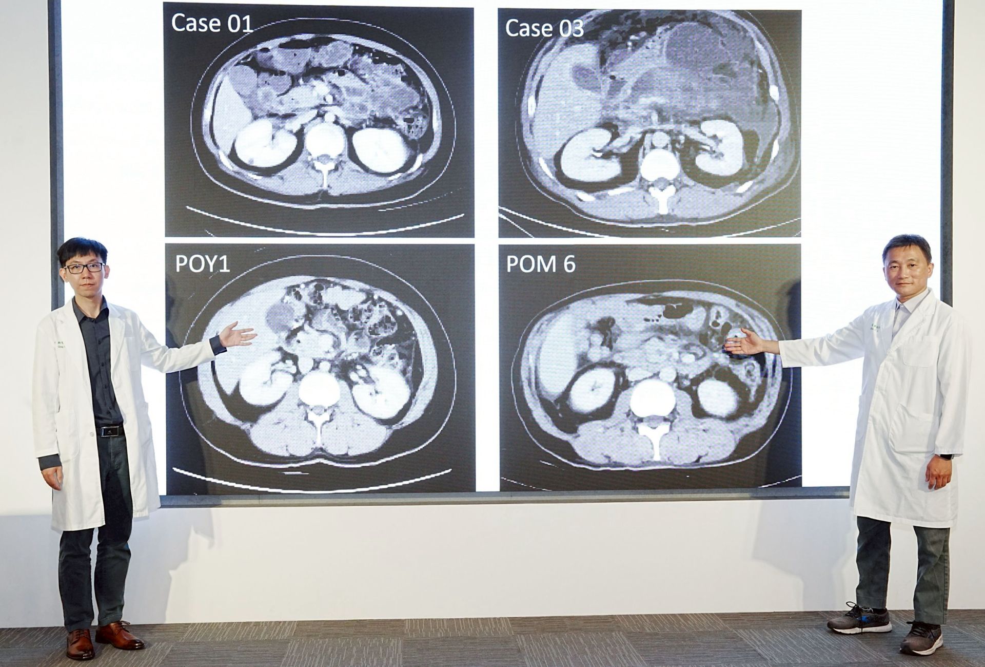 中醫大附醫胰臟醫療團隊在葉俊杰醫師帶領下,去年收治包含許先生等7名重症壞死性胰臟炎病人,病因包含膽結石、酗酒及高三酸甘油脂,平均年齡約52歲,皆屬感染性壞死高風險個案。經一般外科、消化內科與放射診療科多專科團隊採取階段治療後,其中5名病人已順利康復出院,另2名病人持續追蹤治療中,整體存活率較傳統治療有所提升。