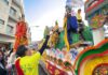 翁縣長等人將聖駕迎請入轎,隨後扶轎走進庄頭,在陣頭及各宮廟眾神明引領下走過大街小巷,鄉親放下手邊工作虔誠跟隨天上聖母遶境,除祈求家園平安,還為共同生活的社會多添一份安定力量。