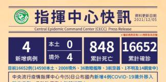 新冠確診12/5增4例境外 全都無症狀 3人突破性感染