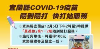 拉高疫苗涵蓋率 宜蘭提供快打服務+贈送百元券及餐盒