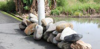 怪事又一樁 學校周邊電桿下方遭放大量巨石 行為人意圖說不清