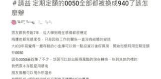 女網友抱怨男友偷買00940 Dcard網友一面倒「這樣建議」
