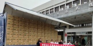 張善政感念東野精機捐贈47萬8,000片口罩 關懷在地學童健康