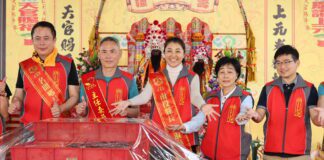 許淑華參與受天宮擔米糕桃祝壽及開香揭桃儀式