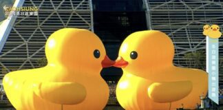 高雄黃色小鴨情人節彩蛋!雙鴨玩親親祝福有情人永浴愛河