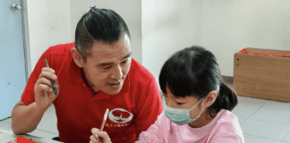點亮小蠟燭協會帶中和兒少寫春聯並贈紅包 台灣愛心餐飲協會及豪美自助餐贈豐盛年菜