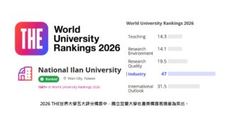 2026 THE世界大學排名 宜蘭大學入榜全球1501+