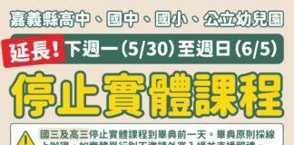 嘉義縣高中以下學校遠距教學延長到6月5日