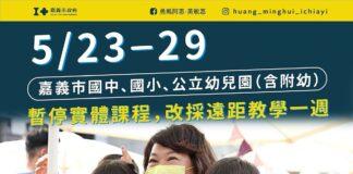 嘉義市國中、國小、公立幼兒園5月23日至29日暫停實體課程
