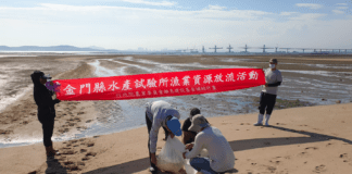 灘地上活化石「鱟」!金門縣水產試驗所育成三棘鱟苗20萬尾放流