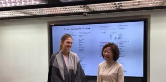 皓暘(左)與 聖馬丁藝術學院珠寶設計系主任(右)合影。(圖片/HAOYANG工作室提供)