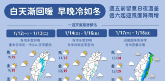 一圖看一周天氣 冷氣團退場回溫 周末再轉濕涼