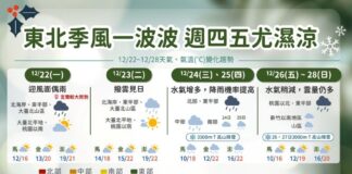一圖看一周天氣 東北季風一波波「耶誕節有望降雪」