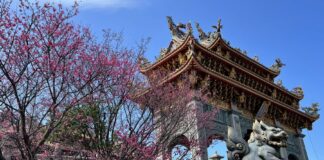 春日浪漫盛放!林口竹林山寺櫻花滿開 莊嚴廟宇化身粉色詩意畫卷