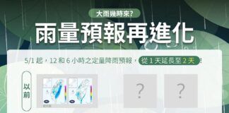 再進化! 5/1起氣象局「雨量預報」延長至48小時 ​