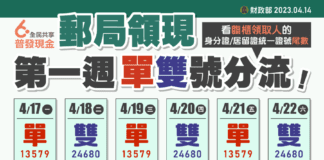 普發6千4/17開放郵局臨櫃領取 首周依身分證尾數分流