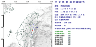 花蓮11:26發生規模4.1地震 最大震度4級