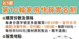 第10輪快篩試劑實名制2/1起上路 幼兒、長者2/28前還可免費領5劑