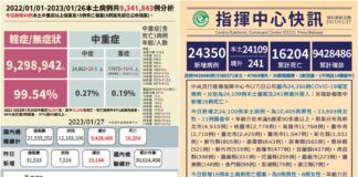 COVID-19確診1/27公布24,109本土病例 為春節連假以來單日最高