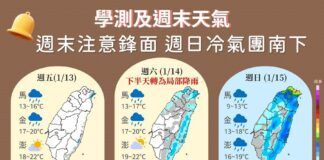 周末注意鋒面! 冷氣團南下氣溫驟降下探12度