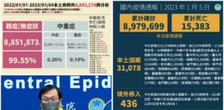 COVID-19疫情持續升溫 1/5公布確診31078本土436境外移入 另有45亡