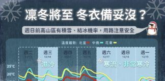 週末入冬首波寒流報到! 中部以北低溫下探6度 2000m↑高山有機會降雪