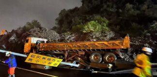 國1汐止段又坍方! 砂石車險遭掩埋、路燈橫躺路中央