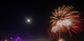 淡水漁人碼頭煙火秀9月25日最終場 金椰子樹、雙色牡丹煙火照亮漁港夜空