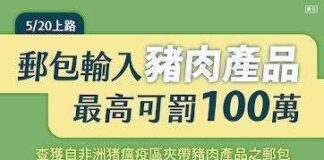 防範非洲豬瘟 公告國際郵包裁罰新措施 !