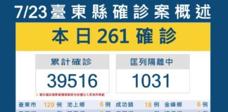 台東COVID-19確診7/23增261本土 衛生局呼籲家中幼童接種疫苗