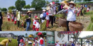 吳秋齡偕孩子割稻 以實際行動培養惜物之心