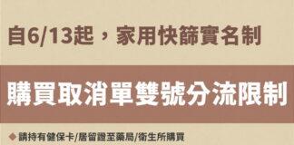 庫存及貨源充裕 6/13起購買家用快篩試劑取消單雙號限制