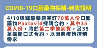 因應COVID-19疫情控制需求 指揮中心採購70萬人份治療用口服藥物