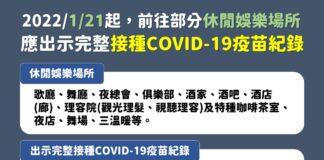 因應Omicron威脅 1/21起到部分休閒娛樂場所應出示完整接種疫苗紀錄