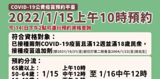 公費平台1/15開放預約疫苗追加劑 1/17開打