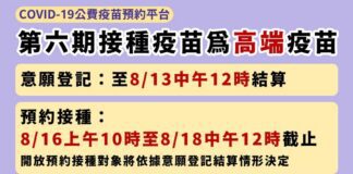 COVID-19疫苗預約平台第六期意願登記將結束 指揮中心籲速登記