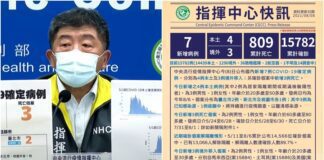 臺灣8/8新冠確診增4本土3境外3歿 累計15782染疫809亡