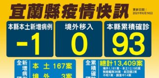 宜縣新冠6/14新增2確診 累積94染疫2死