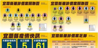 宜蘭新冠5/27新增5確診5校正回歸 累計染疫61人