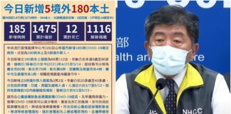 臺灣新冠確診數5/15大爆量 180本土5境外移入