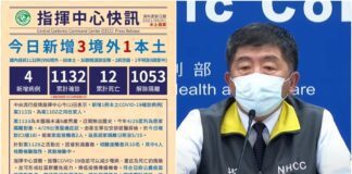 臺灣新冠5/1新增1本土3境外 共1132確診12死67住院中