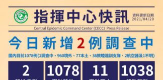 臺灣新冠4/20新增2確診 貨機機組員染疫 感染源調查中