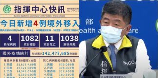 臺灣新冠4/22新增4境外移入 共1086確診11死34住院中