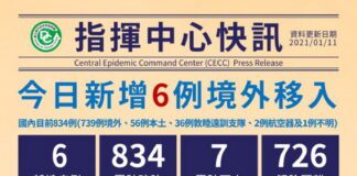 臺灣新冠1/11新增6境外移入 其中3人為家庭群聚感染