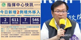臺灣武肺11/25再增5境外移入 累計623確診 7死553解隔離