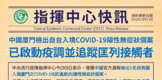 中國檢出1自台入境COVID-19陽性個案 指揮中心啟動疫調並追蹤接觸者