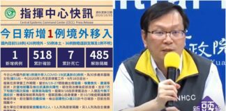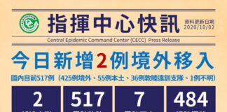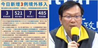 台灣武肺10/6再添3例境外移入 累計已521人染疫