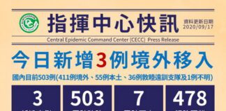 台灣武肺9/17新增3確診  全都是境外移入的本國男女