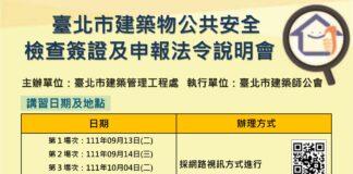 北市推動8樓建物公安申報 9/13起再辦6場說明會 歡迎踴躍參加