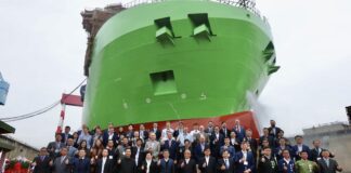 全台首艘全迴旋大型浮吊船「環海翡翠輪」下水儀式 陳其邁:高雄將成為亞洲海洋科技產業重鎮
